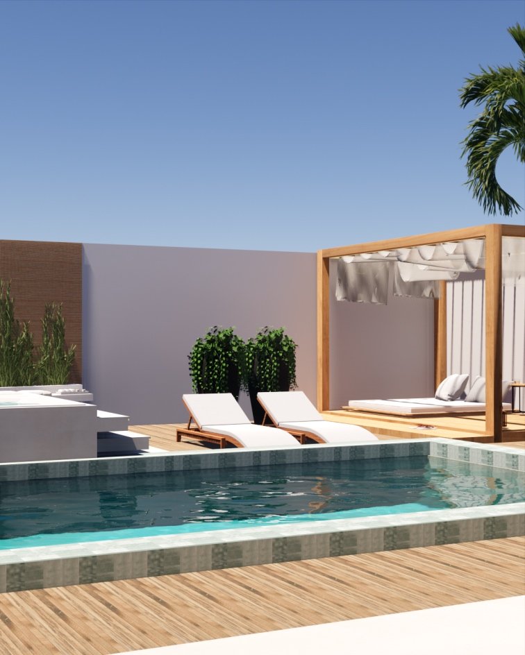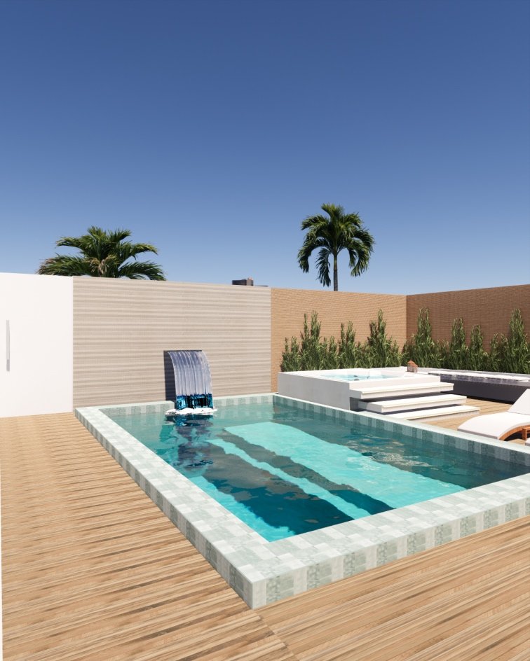 Temos um espaço super versátil ao unir o externo e interno em escalas graduais. A área de piscina tem uma ótima amplitude que foi complementada com pergolado, onde a casa se conecta no mesmo padrão!