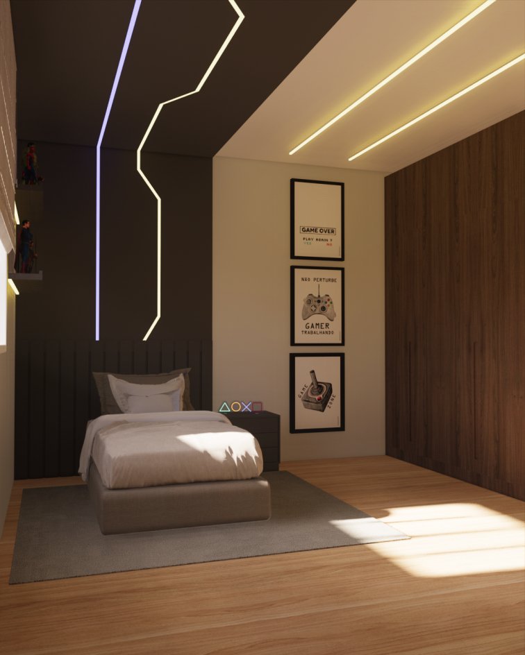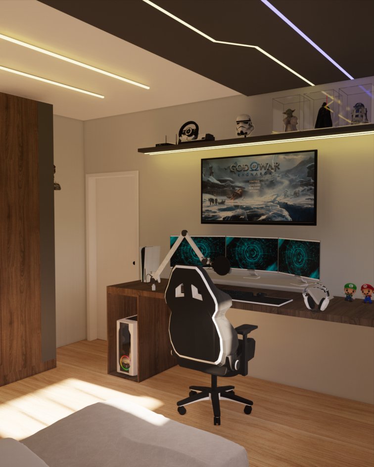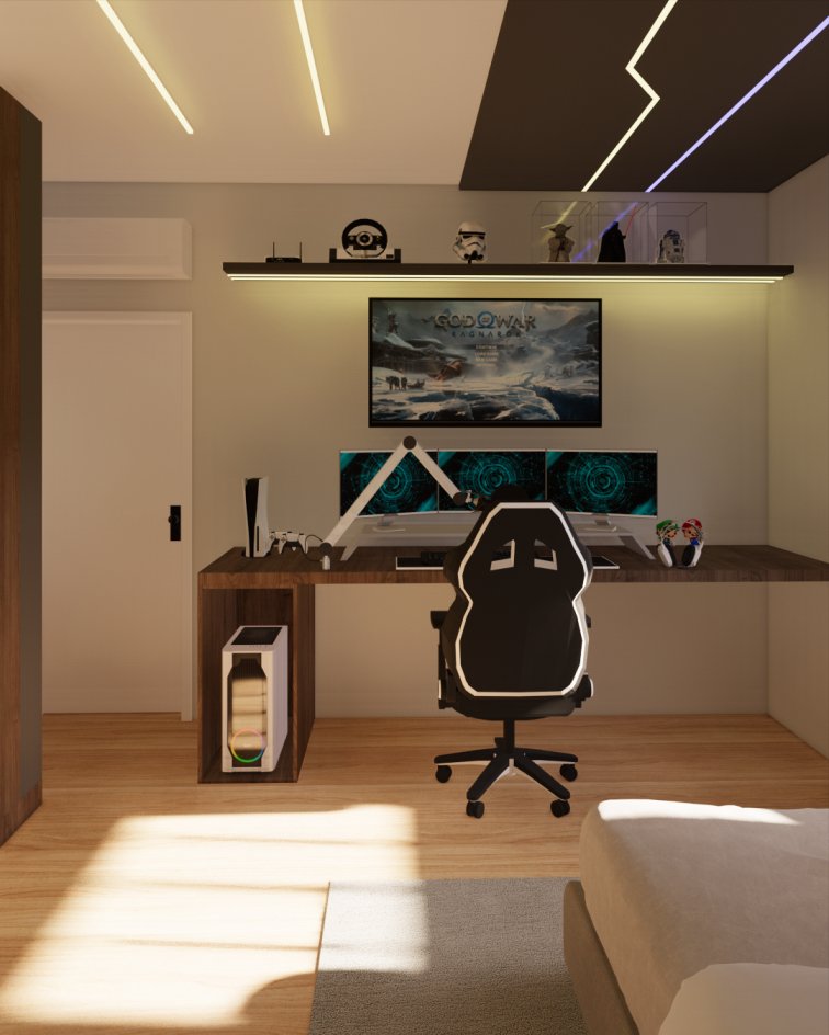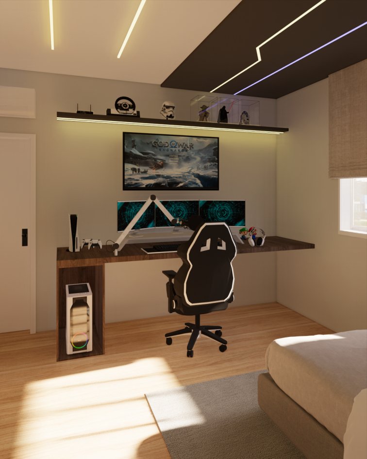 Ele recebeu um projeto todo voltado para os amantes dos jogos e da cultura games, além de ser um ambiente mais adequado para quem ama passar horas conectado.
